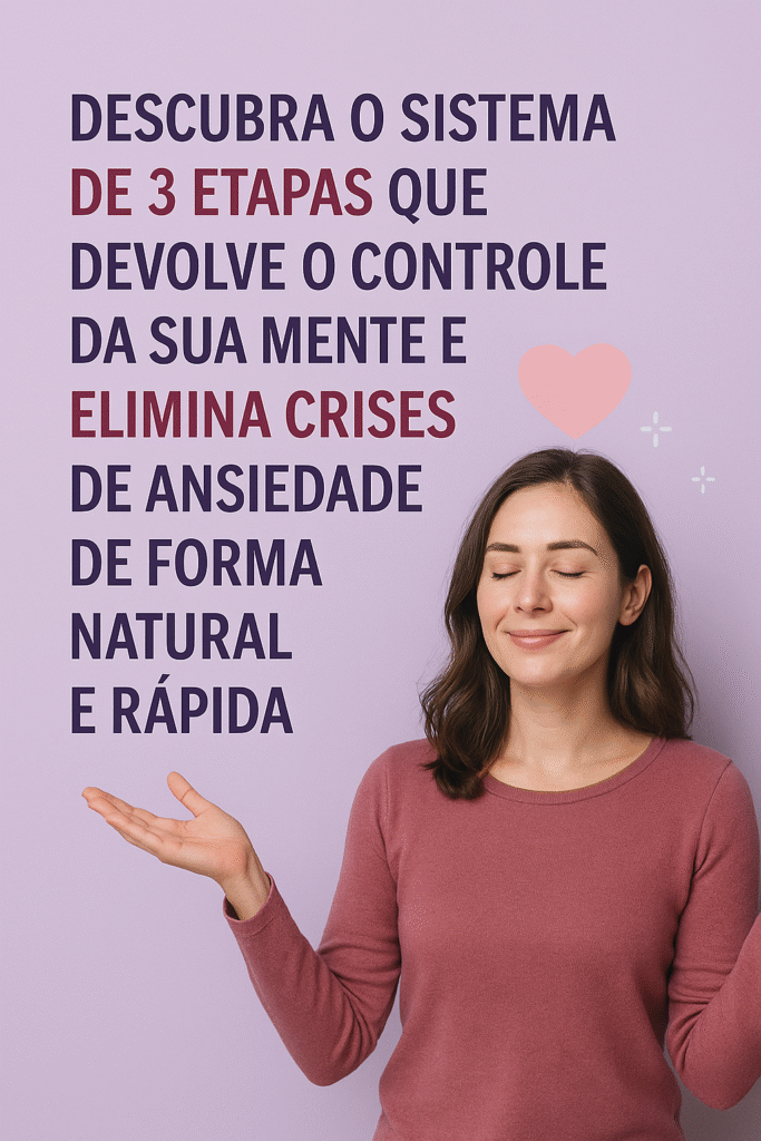 Ele funciona porque combina técnicas naturais que acalmam o sistema nervoso, reorganizam seus padrões mentais e ensinam o corpo a sair do estado de “perigo constante”. Isso reduz drasticamente as crises, devolve clareza, leveza e uma sensação real de segurança interior Com esse sistema, você aprende exatamente o que fazer — e em qual ordem — para desligar a crise de ansiedade e conquistar uma vida tranquila, estável e livre de crises.
